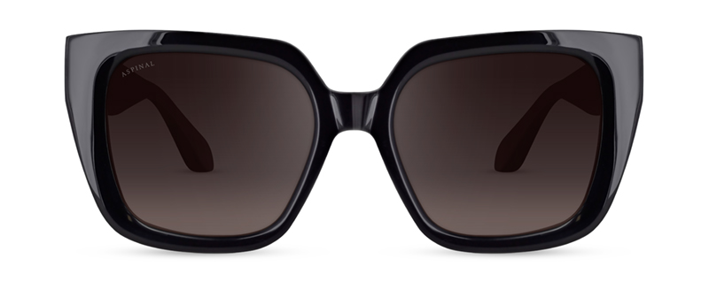 Col.01 is an impactful black with luxurious gold chain temples interwoven with black leather and grey graduated lenses